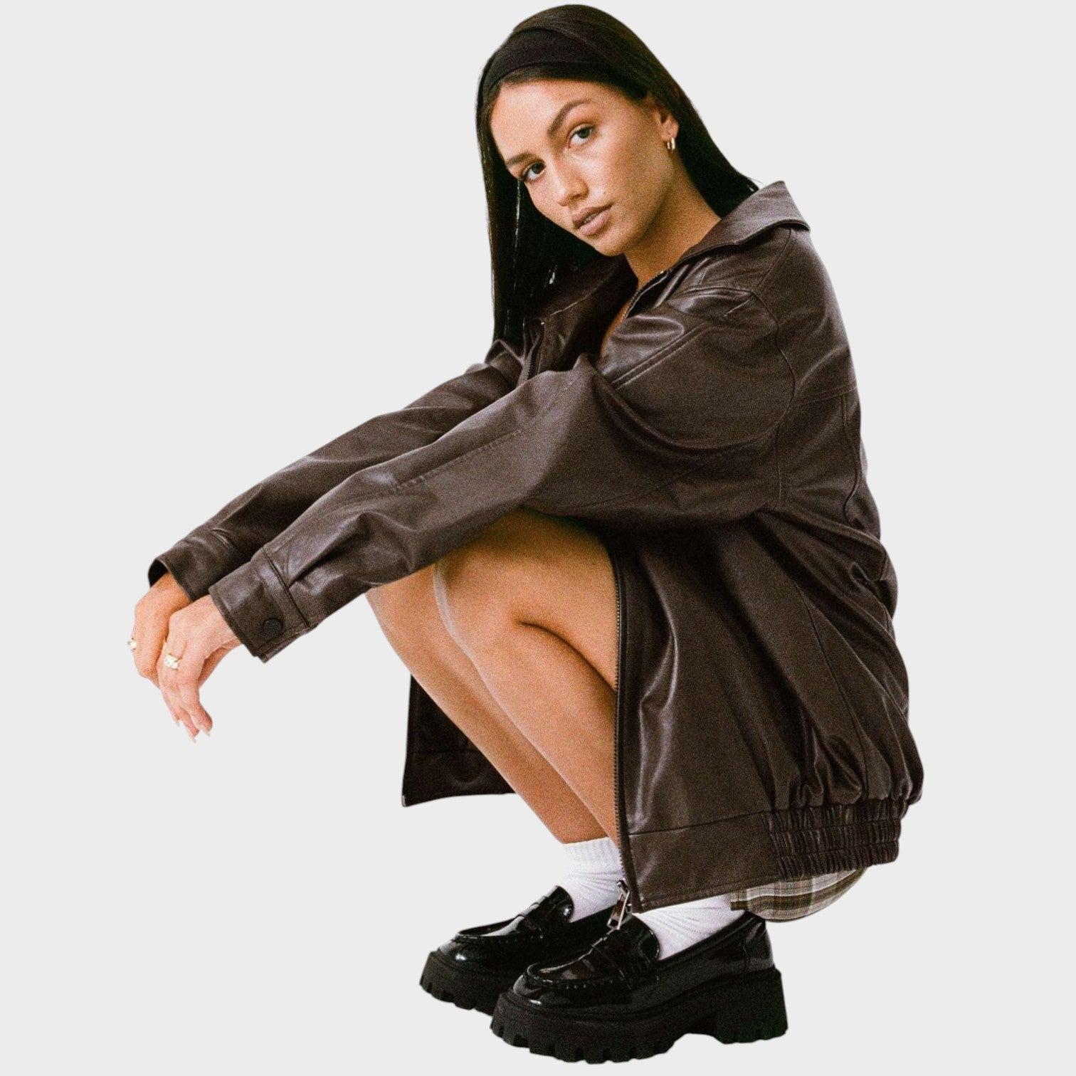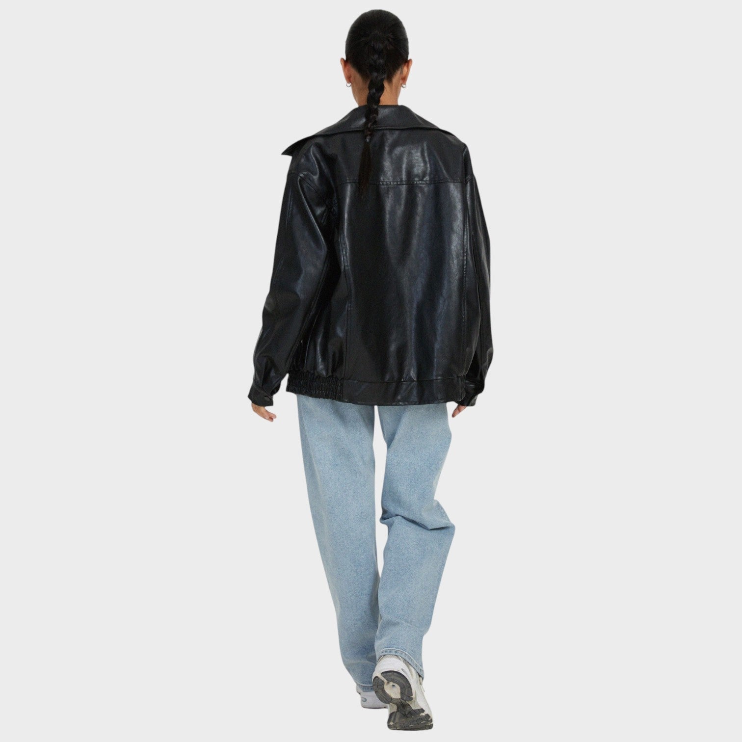 Coupe élégante : La coupe ample de cette veste en cuir offre confort tout en restant chic et à la mode - idéale à porter par-dessus n'importe quelle tenue.