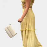 L'ensemble Ilys est une ode à la féminité éthérée. Composé d'un crop top avec des bretelles ajustables et des détails en dentelle, et d'une jupe maxi fluide avec de délicates couches, ce look apporte une touche vintage avec une fraîcheur contemporaine. Idéal pour des escapades estivales, des célébrations en plein air ou des après-midis détendus avec charme.
