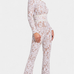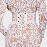 La combinaison Jimena fusionne sensualité et design sophistiqué avec un effet inoubliable. Confectionnée en dentelle brodée avec des paillettes sur une base translucide, ce design ajusté à manches longues met en valeur chaque mouvement avec une brillance subtile. La large ceinture type corset définit la silhouette avec caractère et structure.