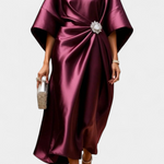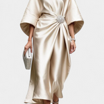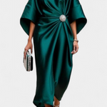 Sophistication à chaque mouvement. La robe Ubelia éblouit par sa finition satinée, sa silhouette élégante en coupe A et ses détails froncés qui mettent en valeur la silhouette avec subtilité. Son décolleté bateau et ses manches midi apportent un équilibre parfait entre sobriété et féminité.