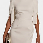 Un design classique avec des détails qui élèvent l'élégance. Reece se distingue par un col rond intemporel et des manches mi-hauteur qui équilibrent sobriété et style. Les perles imitation blanches apportent une touche raffinée et lumineuse, transformant une silhouette simple en une pièce sophistiquée et polyvalente.