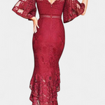 Une proposition romantique qui dégage une élégance intemporelle. Veronika combine une dentelle délicate sur le corsage avec un décolleté en forme de cœur qui met en valeur la féminité avec subtilité. Les manches à cloche apportent une touche sophistiquée, tandis que la jupe sirène avec une coupe asymétrique et des volants à double couche s'écoule avec grâce à chaque mouvement.